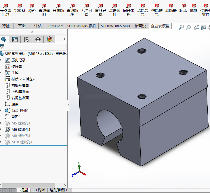 solidworks设计SBR系列滑块 滑块模型 滑块设计 滑块3D模型设计内容如下: