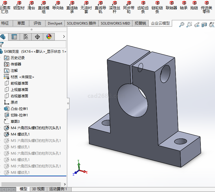 solidworks设计SK轴支座 轴支座模型 轴支座3D模型 设计内容如下: