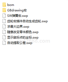 SolidWorks宏 SW弹簧宏 齿轮宏插件自动生成齿轮 求最大边界 随意改变零件颜色 显示鼠标点的坐标 自动提取公差 BOM宏内容如下: