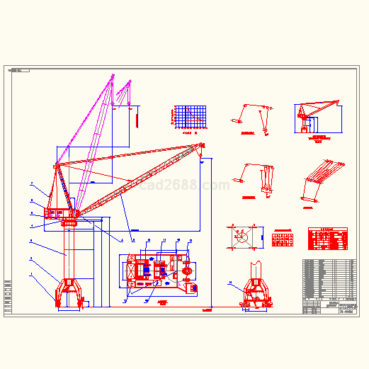 MQ600门座吊CAD图纸如下: